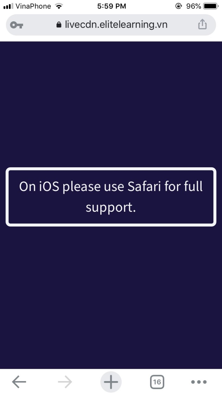 Bạn sao chép đường link lớp học trực tuyến vào những trình duyệt không được hỗ trợ, hệ thống sẽ thông báo như hình bên dưới.